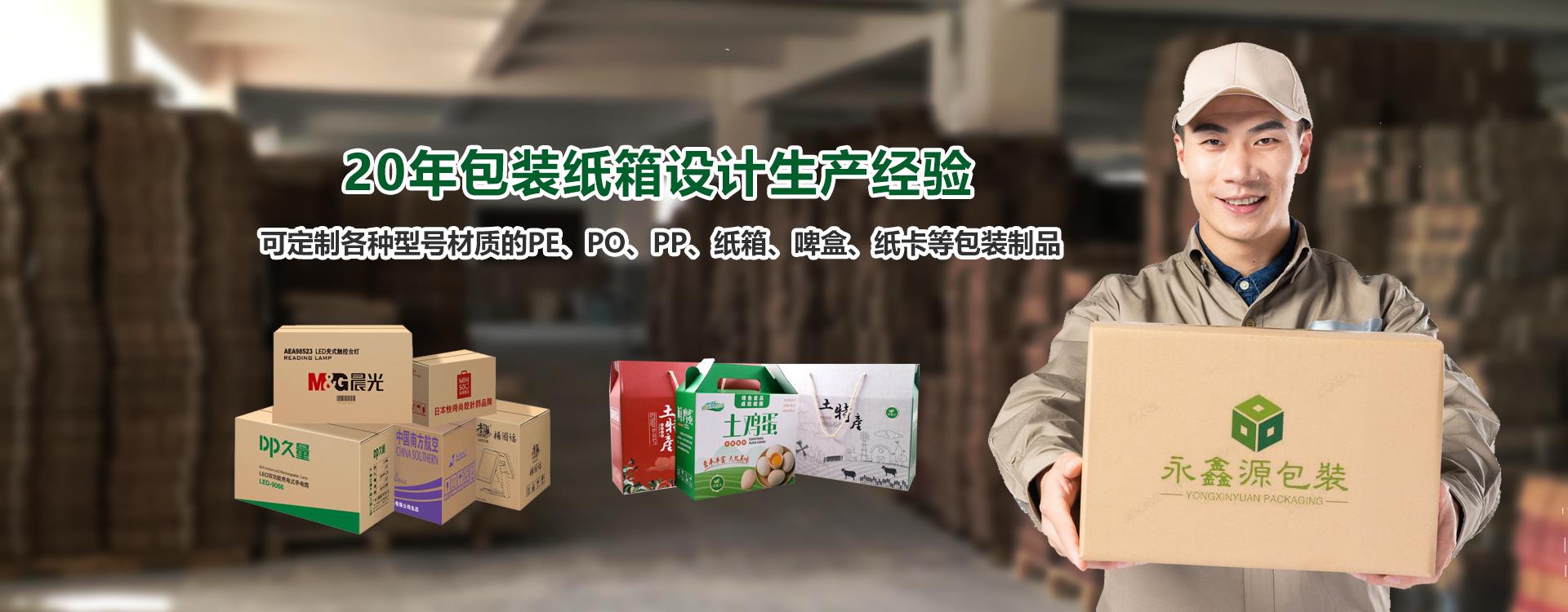 主要产品为PE、PO、PP;纸箱、啤盒、纸卡(彩盒,不干胶)、快递纸箱、重型纸箱、水果包装纸箱、重型纸箱、电子品纸箱、纸箱定制、飞机盒定制等包装产品。业务范围有深圳宝安、东莞常平、虎门、黄江、广州、惠州等地。